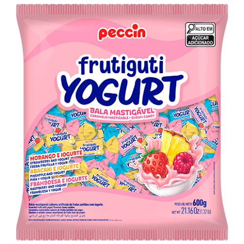 A Bala Mastigável Peccin Frutiguti Sortida 400g é a escolha perfeita para deixar qualquer momento mais doce e especial. Com textura macia e irresistível, combina o sabor cremoso do iogurte com frutas variadas, agradando crianças e adultos. Ideal para festas, lembrancinhas, decorações e revenda. A embalagem contém aproximadamente 80 unidades, com cerca de 5g cada bala. Sabor e praticidade em um só produto. Imagem meramente ilustrativa.