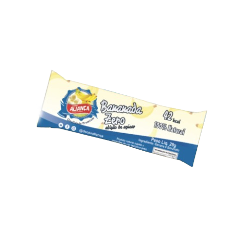 A Bananada Aliança Zero Premium é um doce saudável e saboroso, pesando 29 gramas. Feita com banana 100% natural, não contém adição de açúcar, sendo uma ótima opção para quem busca um lanche nutritivo sem culpa. Ideal para consumir a qualquer hora do dia, proporcionando energia e prazer de forma prática e deliciosa. Imagem meramente ilustrativa.