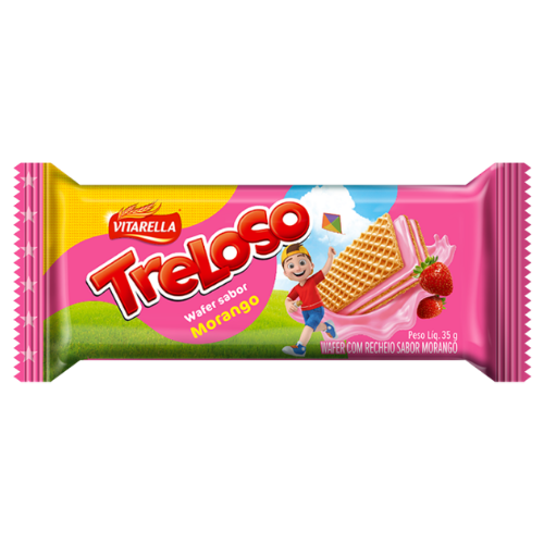 O Biscoito Wafer Treloso Sabor Morango 35g é leve, crocante e cheio de sabor. Com camadas delicadas e recheio sabor morango, é perfeito para o lanche da escola, trabalho ou para adoçar o dia a qualquer hora. Prático e fácil de levar, agrada crianças e adultos. Contém glúten e lactose. Alérgicos: contém derivados de soja e trigo. Pode conter aveia, centeio, cevada e leite. Imagem meramente ilustrativa.