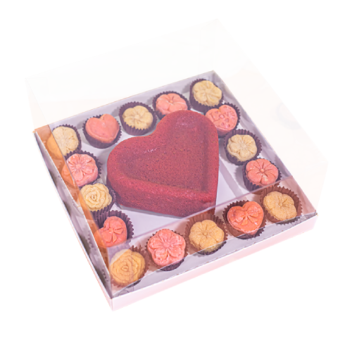 Caixa Party Box para Bento Cake + 16 doces, perfeita para valorizar suas produções em grande estilo. Com tampa de acetato transparente, protege e ao mesmo tempo permite a visualização do interior, garantindo uma apresentação sofisticada e atrativa. Ideal para confeiteiros, presentes ou vendas sazonais, acomoda um bolo bento e até 16 unidades de doces como brigadeiros, trufas ou bombons. Medidas aproximadas: 21 x 21 x 10 cm. Produzida em papel, tinta e plástico. Imagens meramente ilustrativas.