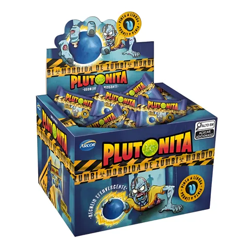O Chiclete Plutonita Mordida Zumbi é uma opção divertida para quem gosta de sabores diferentes e surpreendentes. Com chicle de bola confeitado e recheio efervescente sabor artificial de cerveja, proporciona uma experiência inusitada e marcante a cada unidade. Ideal para compartilhar, utilizar em festas ou para quem busca um chiclete com proposta criativa e diferenciada. Embalagem com 180g. Imagem ilustrativa.