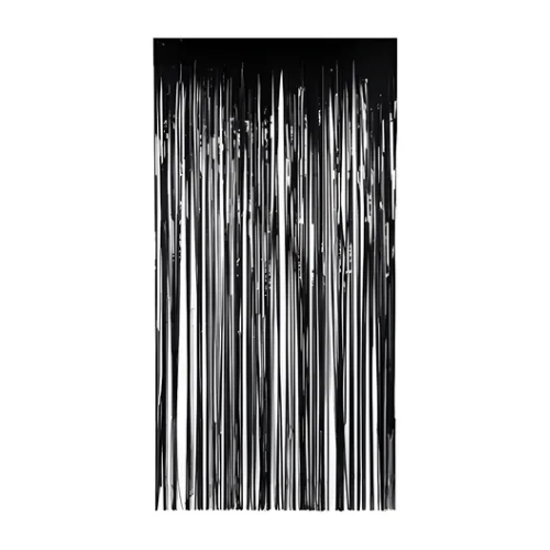 A Cortina Decorativa Metalizada Preta 2x1M é ideal para criar um ambiente moderno e cheio de estilo. Perfeita para festas, aniversários, baladas, formaturas ou eventos temáticos, pode ser usada como painel de fundo para fotos, na entrada ou para destacar a mesa de doces. Fácil de instalar e com visual marcante, transforma o espaço em segundos. Um toque versátil para qualquer ocasião. Imagem ilustrativa.