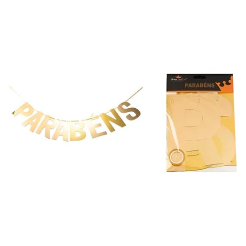 A Faixa Parabéns é um item decorativo clássico para aniversários e comemorações. Com 2 metros de comprimento, traz letras de 12 cm de largura por 18 cm de altura, garantindo boa visibilidade e charme para a decoração. É prática, fácil de pendurar e pode ser usada em diversos ambientes, como festas em casa, salões ou escolas. A imagem é meramente ilustrativa, podendo haver variação nos detalhes.