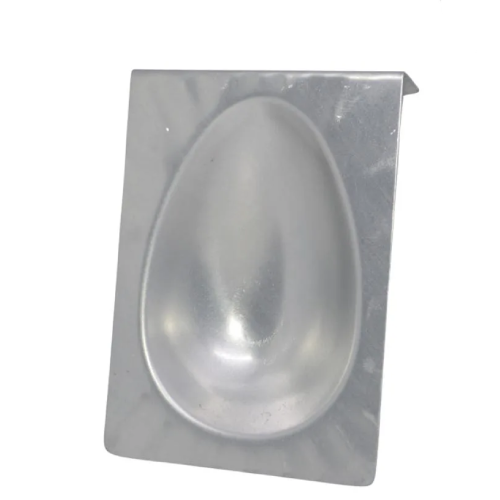 A Forma de Alumínio para Ovo de Páscoa Médio é ideal para o preparo de ovos salgados, garantindo formato uniforme e bom acabamento. Com dimensões de 16 x 11 x 4,5 cm, é indicada para produções artesanais e comerciais, atendendo diferentes demandas. Versátil e prática, permite a confecção de ovos recheados e preparações salgadas com padronização, sendo uma excelente opção para confeiteiros e produções sazonais. Imagem ilustrativa.