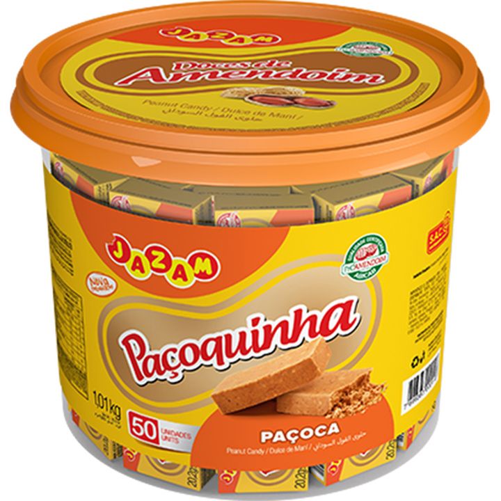 Paçoca Quadrada Jazam Paçoquinha - Embalagem com 1,01KG e cerca de 50 unidades. Um clássico brasileiro em versão econômica e perfeita para o seu negócio! Com sabor marcante de amendoim e textura macia, é ideal para consumo a qualquer hora do dia. Perfeita para festas, revenda ou consumo familiar, agrada todos os públicos com seu gostinho tradicional. O pote de 1,01kg garante excelente rendimento, ótima exposição e alto giro no ponto de venda. Imagem meramente ilustrativa.