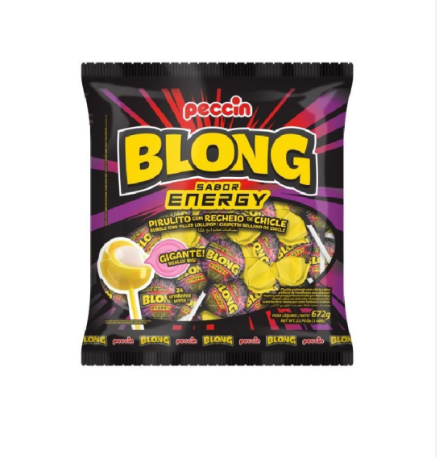 O pacote de 600G do Pirulito Blong 12 Sabor Energy vem em média com 50 unidades, sendo ideal para festas, eventos ou revenda. Cada pirulito é recheado com chiclete sabor artificial de framboesa com abacaxi, oferecendo uma combinação intensa e marcante a cada unidade. Uma opção prática para distribuir, compartilhar e deixar diferentes ocasiões ainda mais animadas. Imagem ilustrativa.
