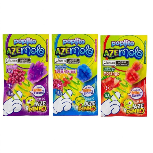 O Pirulito Poplito Azemola Sortido 13,5g é um doce divertido e interativo que conquista crianças e adultos. Com delicioso sabor azedinho, vem com um cabo em formato de mola que brilha no escuro após ser exposto à luz, tornando a experiência ainda mais especial. Ideal para festas, lembrancinhas e kits infantis. Produto sortido: as cores e sabores podem variar. Imagem meramente ilustrativa.