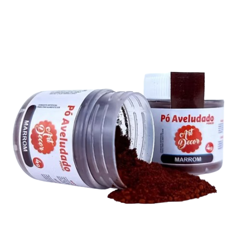 O Pó Aveludado Art Decor 4G é indicado para colorir preparações sem alterar sua consistência, como chantilly, massas de brigadeiro, chocolates e outras misturas. Fácil de aplicar, proporciona cores vibrantes e delicadas, garantindo um acabamento sofisticado e uniforme em suas criações. Ideal para dar toque profissional e criativo às suas receitas. Imagem ilustrativa.