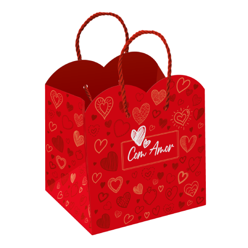A Sacola Amor Especial é perfeita para quem deseja presentear com elegância, charme e um toque de exclusividade! Com um design apaixonante da coleção Amor em Caixa, ela se destaca pelas bordas onduladas em formato de coração, que trazem um acabamento sofisticado e diferenciado. Suas alças de cordão resistentes garantem praticidade no transporte, enquanto a estampa moderna valoriza ainda mais qualquer conteúdo. Com medidas de 16x13,5x17 cm, possui um tamanho compacto e funcional, ideal para acomodar arranjos, kits e caixas de doces com segurança e estilo. Imagem meramente ilustrativa.