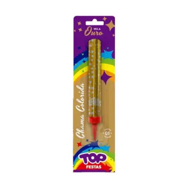Vela Vulcão Chama Colorida Ouro: Criada para proporcionar momentos inesquecíveis e de grande alegria em aniversários, casamentos, formaturas, recepções, festas e performances artísticas. Deixe a chama colorida em tom de ouro iluminar suas celebrações com um toque especial e encantador. Imagem meramente ilustrativa.