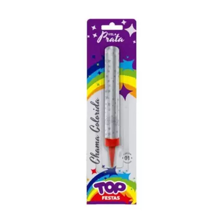 Vela Vulcão Chama Colorida Prata: Desenvolvida para criar momentos inesquecíveis e repletos de alegria em aniversários, casamentos, formaturas, recepções, festas e performances artísticas. Deixe a chama colorida em tom de prata iluminando suas celebrações, proporcionando um toque especial e encantador. Imagem meramente ilustrativa.